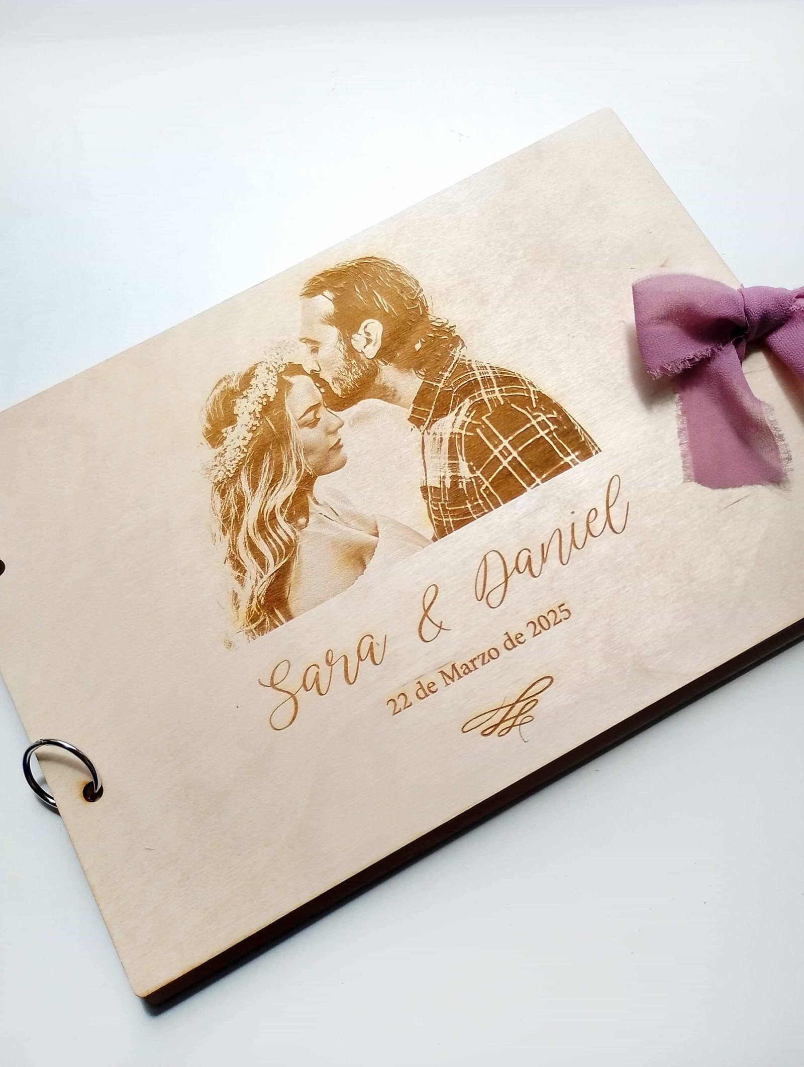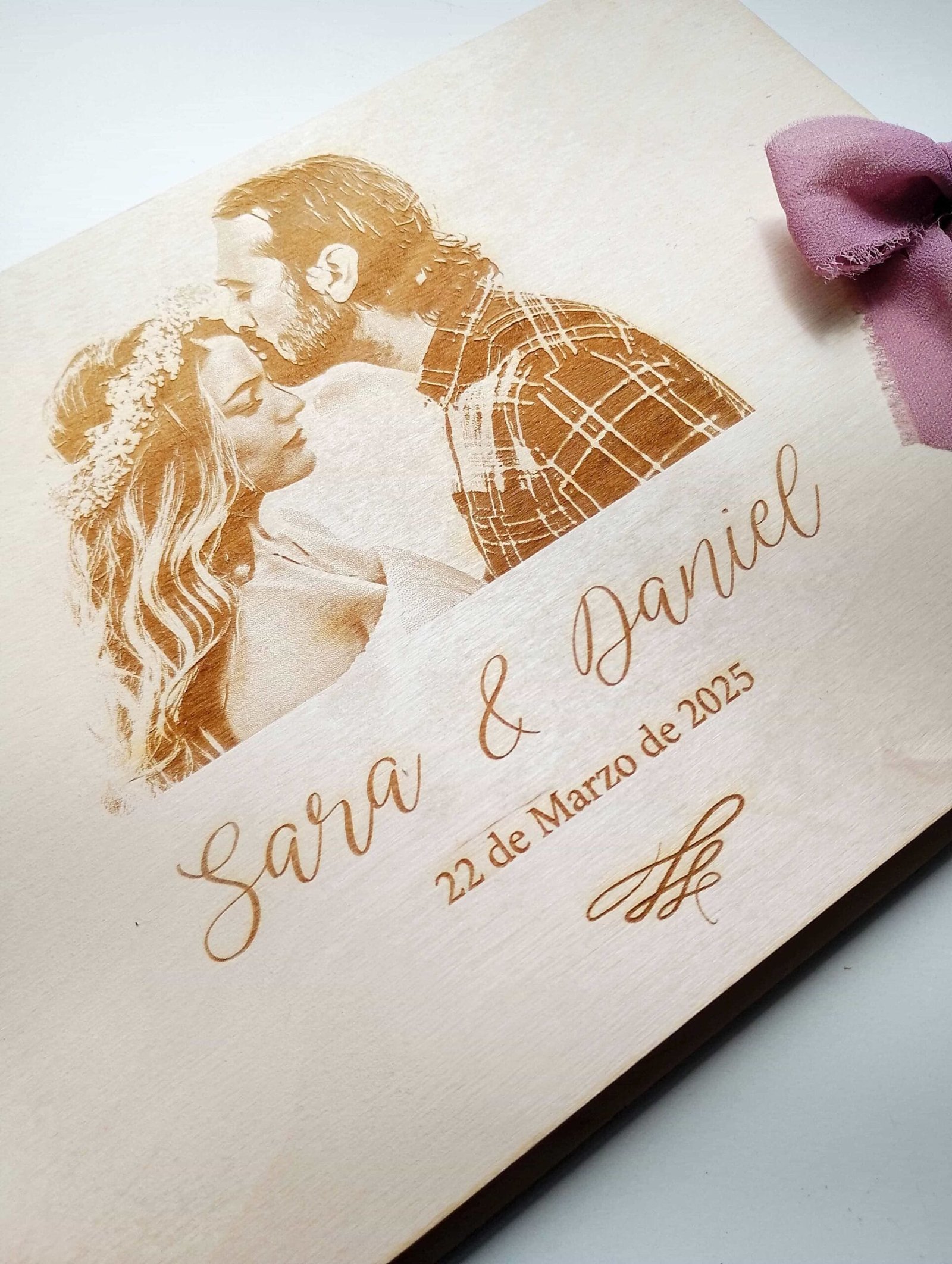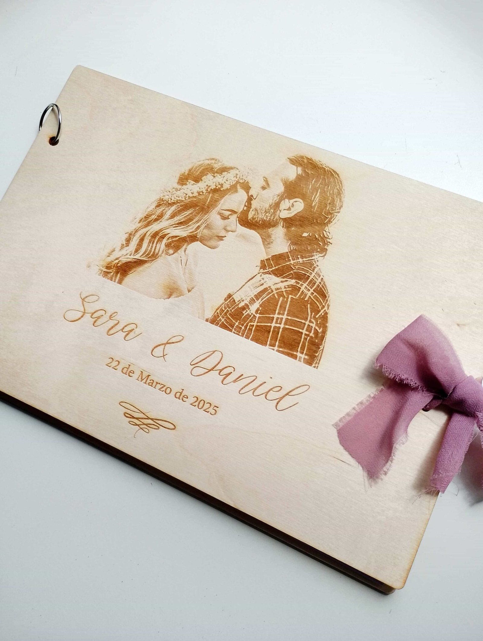 Álbum de fotos personalizado / Libro de Firmas en Madera Foto Grabada