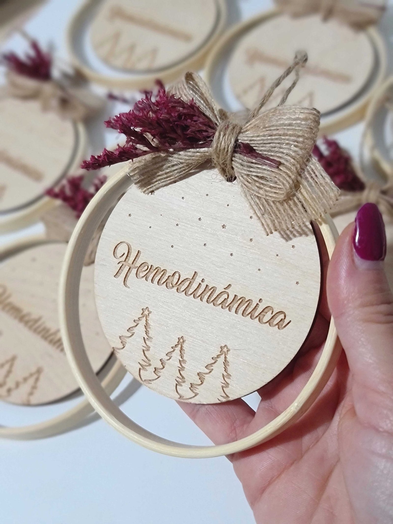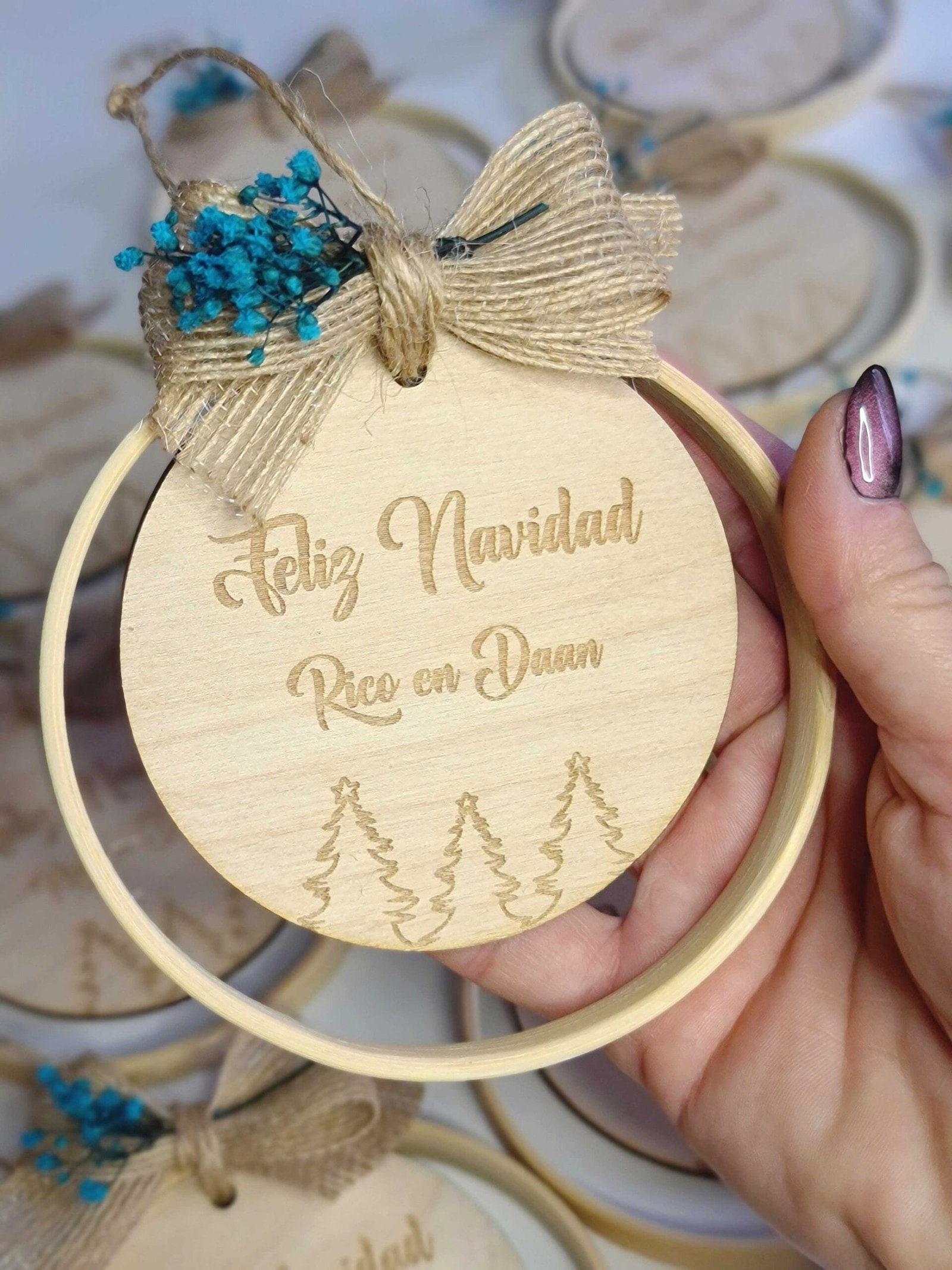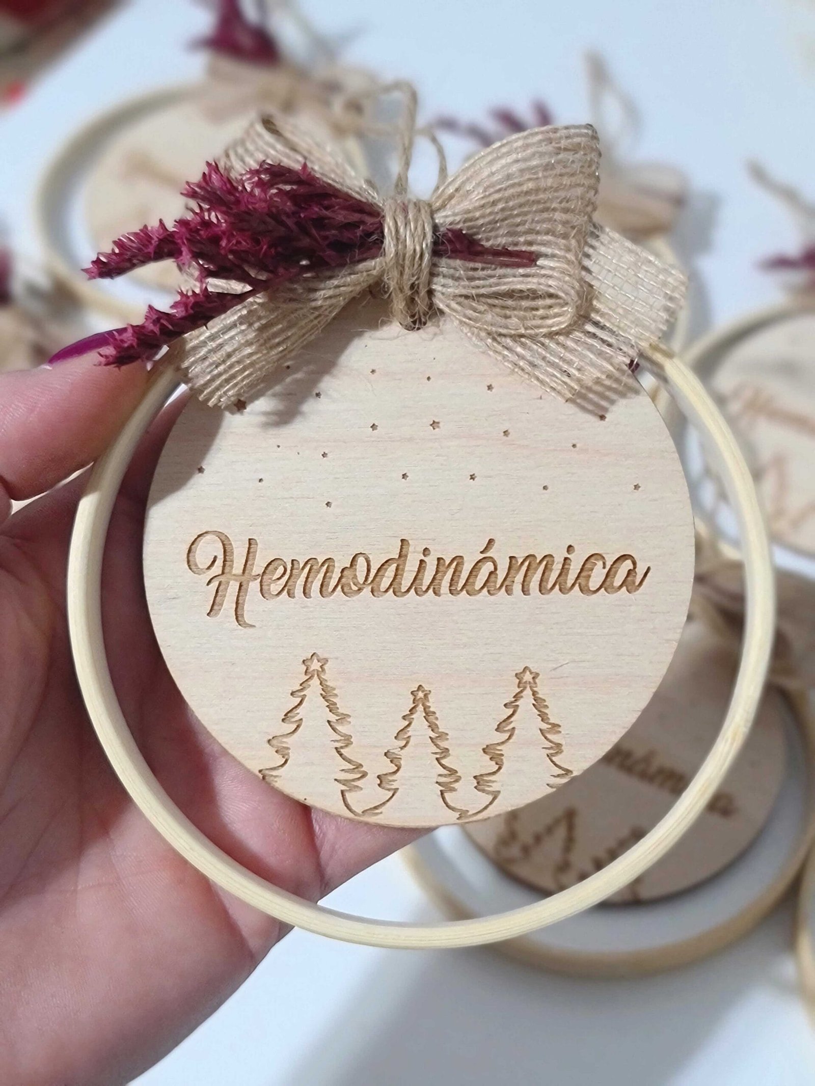 Haz que esta Navidad brille con nuestra Bola de Navidad personalizada en aro de bambú, una pieza artesanal que combina elegancia natural, sostenibilidad y detalles hechos con amor.