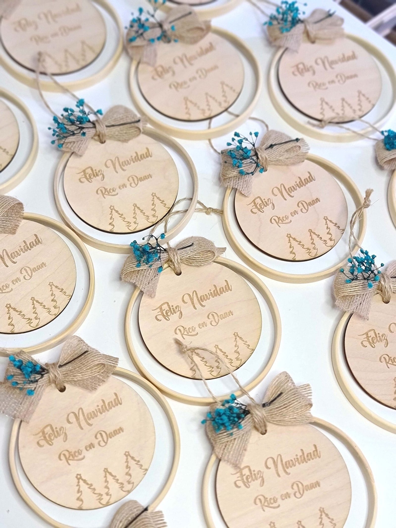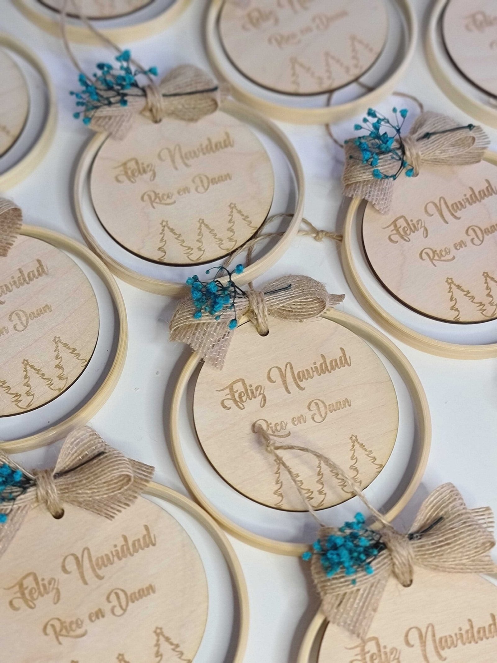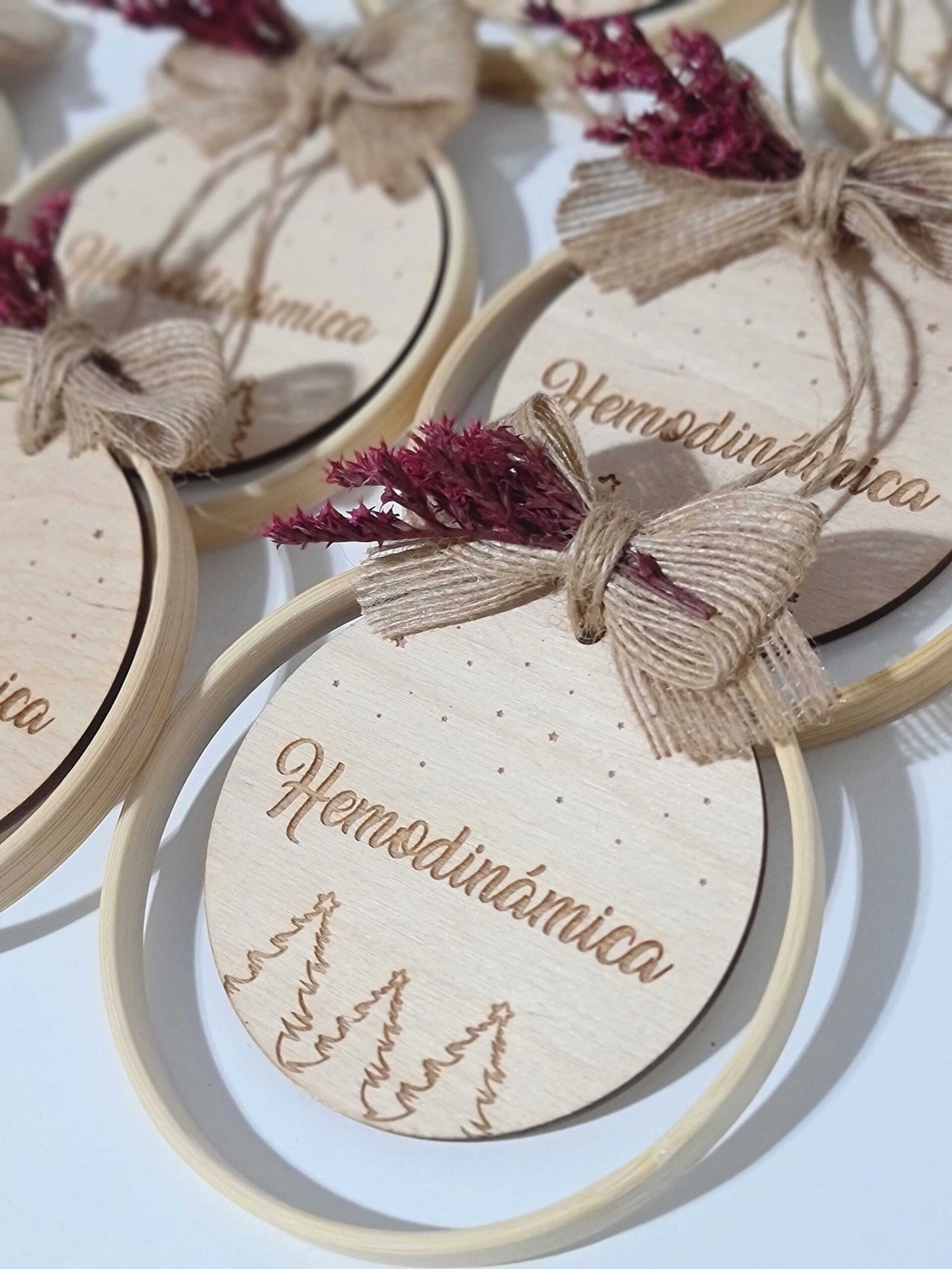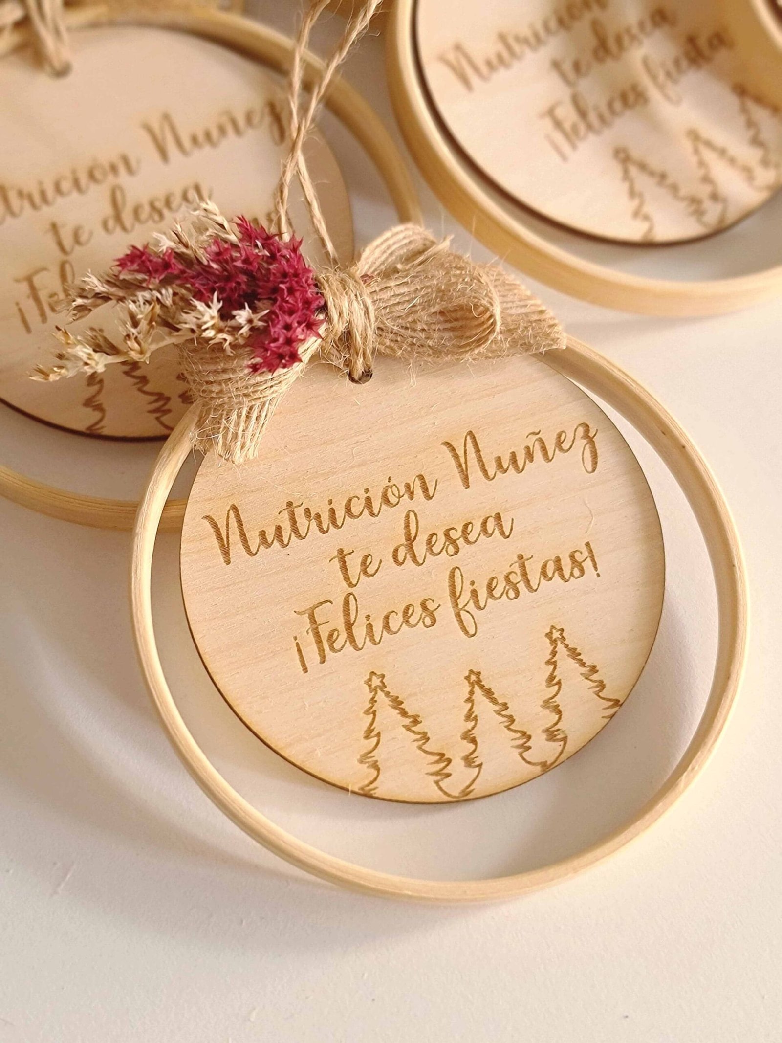 Cada adorno está elaborado a mano con bambú de alta calidad, madera personalizada y flores preservadas cuidadosamente seleccionadas, para ofrecerte un diseño exclusivo que refleje tu estilo y dure año tras año.
