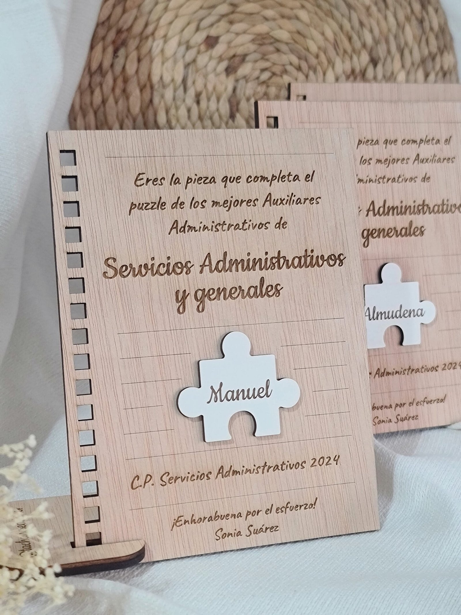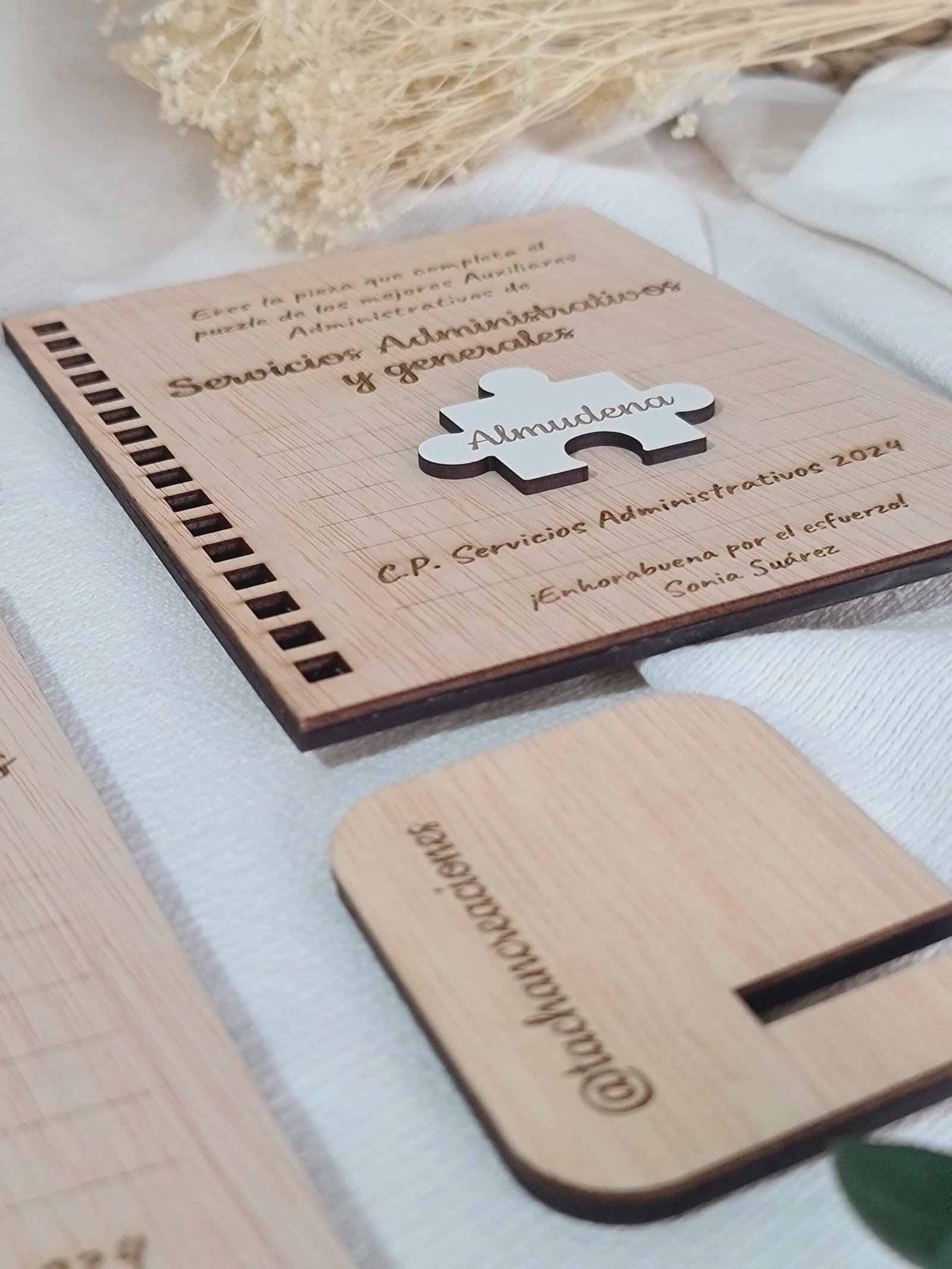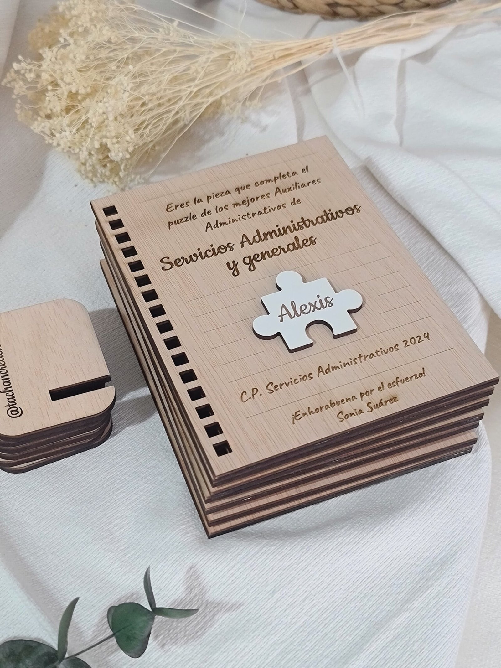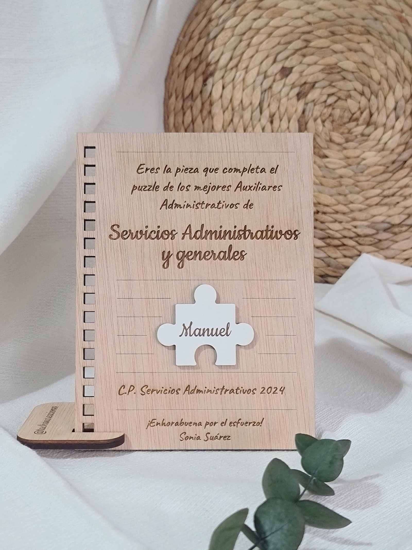 Celebra los logros de tus alumnos con nuestro certificado en madera, diseñado en forma de hoja de cuaderno. Ideal para estudiantes de formación profesional en administración, este diploma personalizable incluye el nombre del alumno y el curso completado. Un regalo elegante y duradero que reconoce su esfuerzo y les inspira a seguir adelante en su carrera.