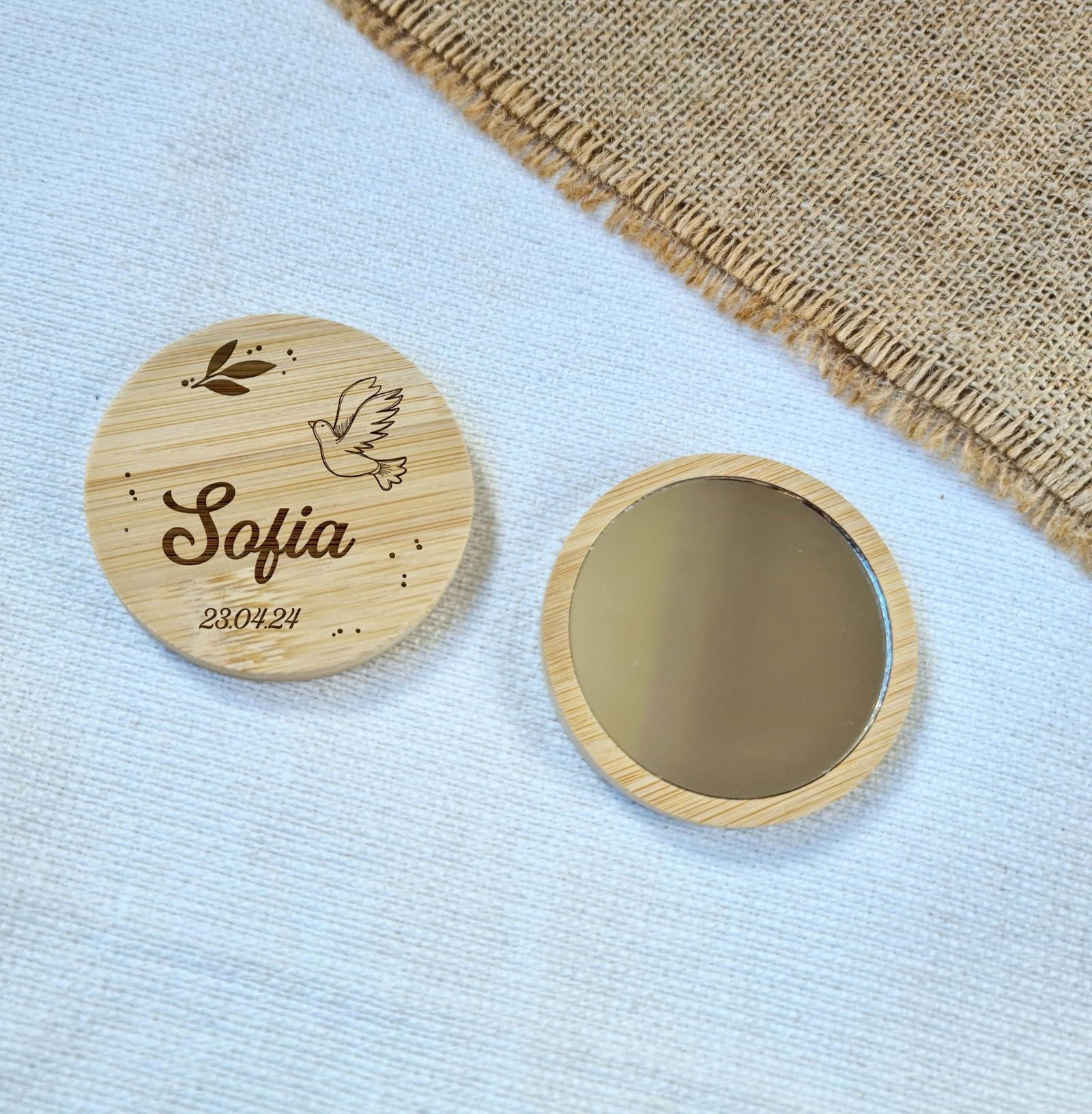 Espejo de bambú personalizado Bautizo
