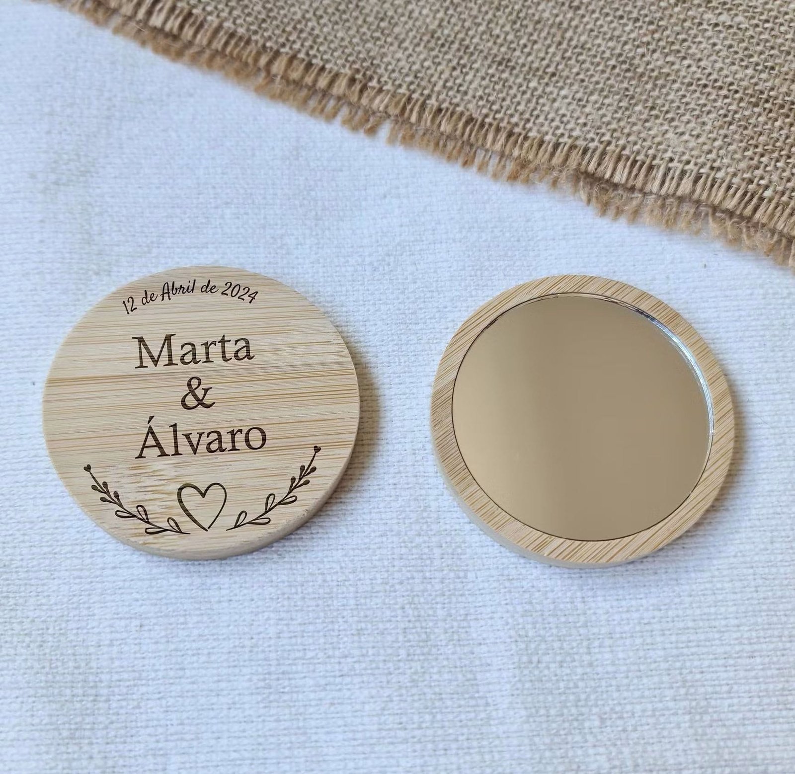 Sorprende a tus invitados con este espejo personalizado, les encantará este detalle, lo podrán llevar como un recuerdo bonito de ese día especial