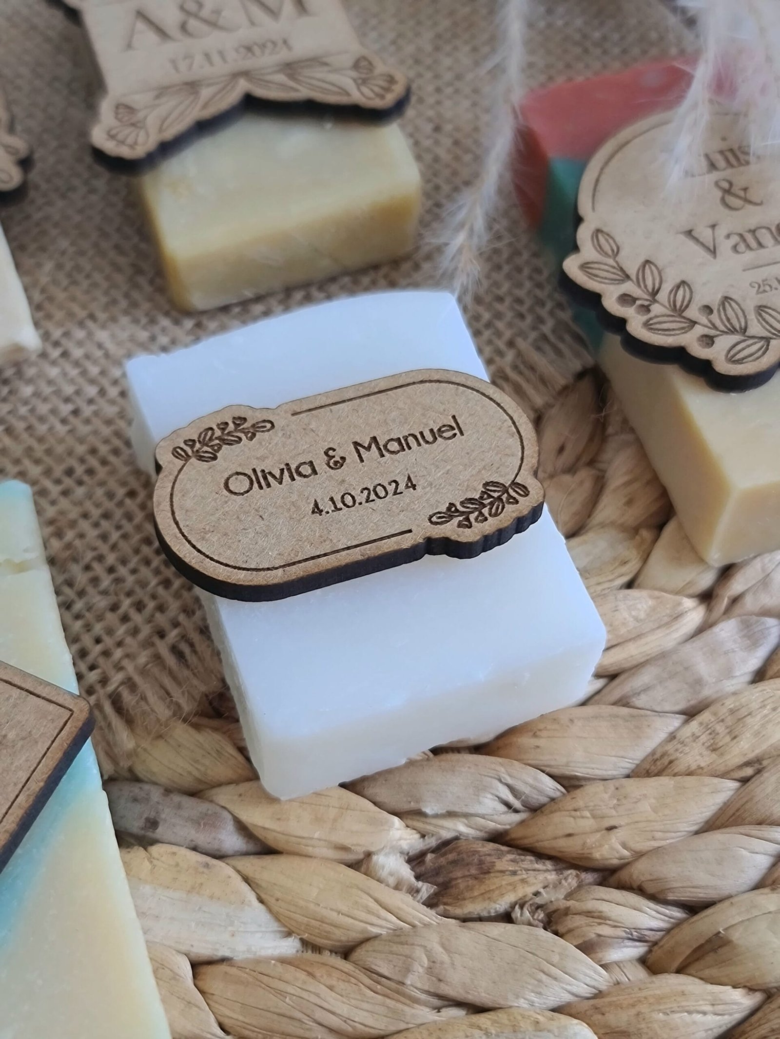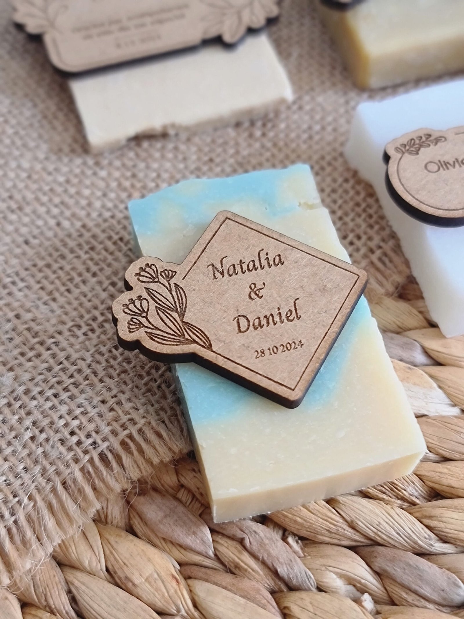 Nuestros jabones naturales hechos a mano son unos detalles perfectos si quieres sorprender a tus invitados y hacerles un regalo único e inolvidable. Además de bonito es un producto muy útil, tus invitados te agradecerán este regalo ya que podrán disfrutar de sus beneficios para la piel durante mucho tiempo. Presentamos 5 jabones distintos, puedes elegir para tu evento el que más te guste!Jabones ingredientes: