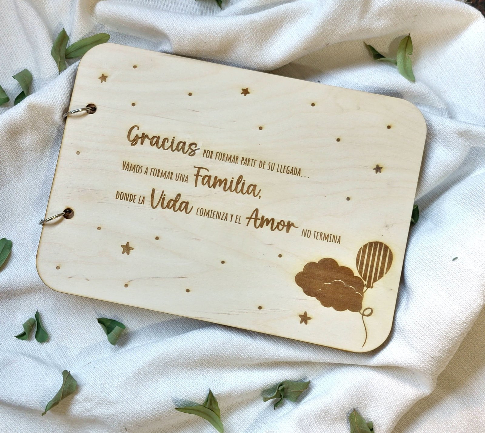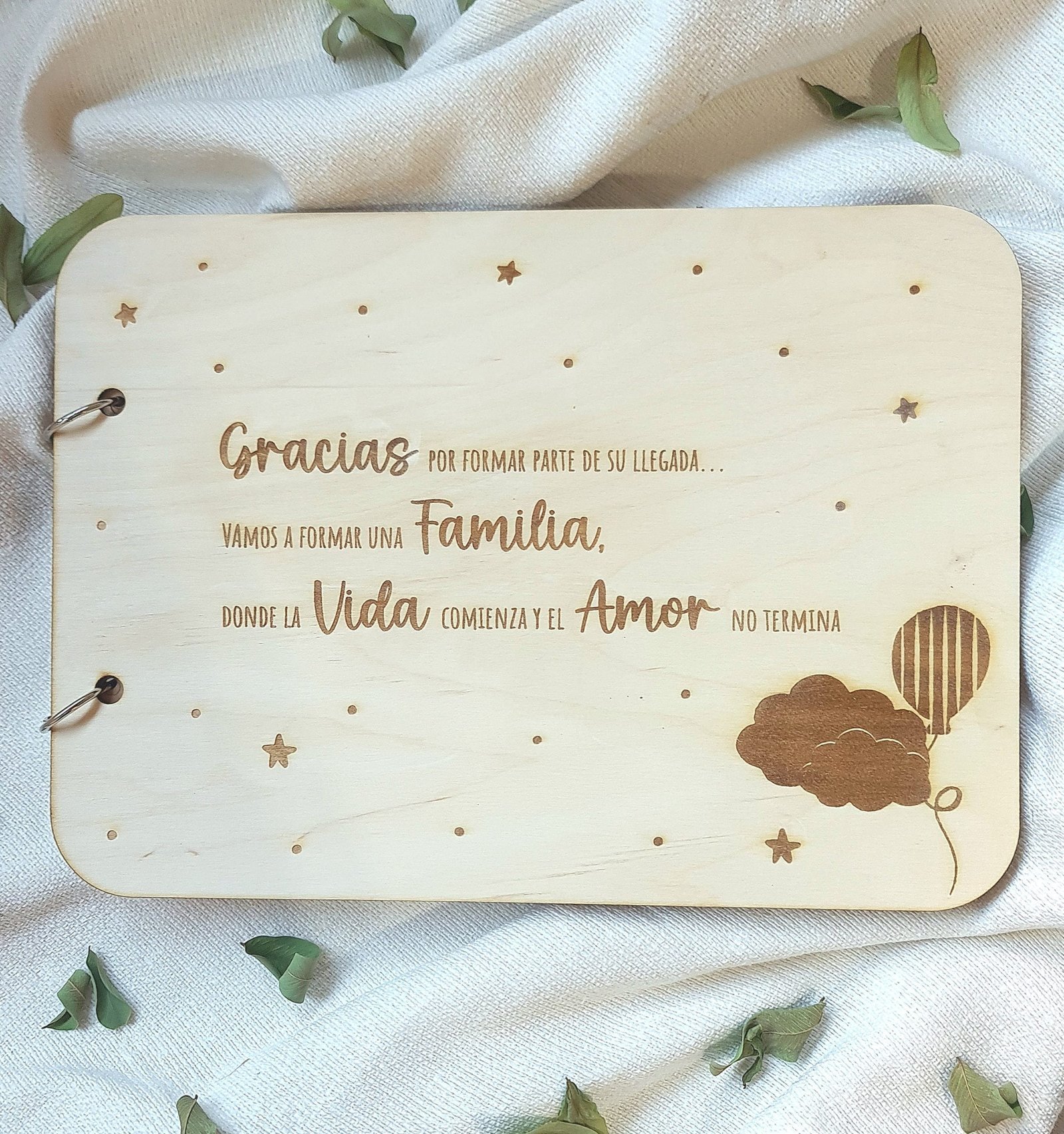 El álbum incluye 20 hojas de color marrón kraft de tamaño A4 y 300 gr de grosor. En las opciones puedes indicar si quieres añadir hojas extra.