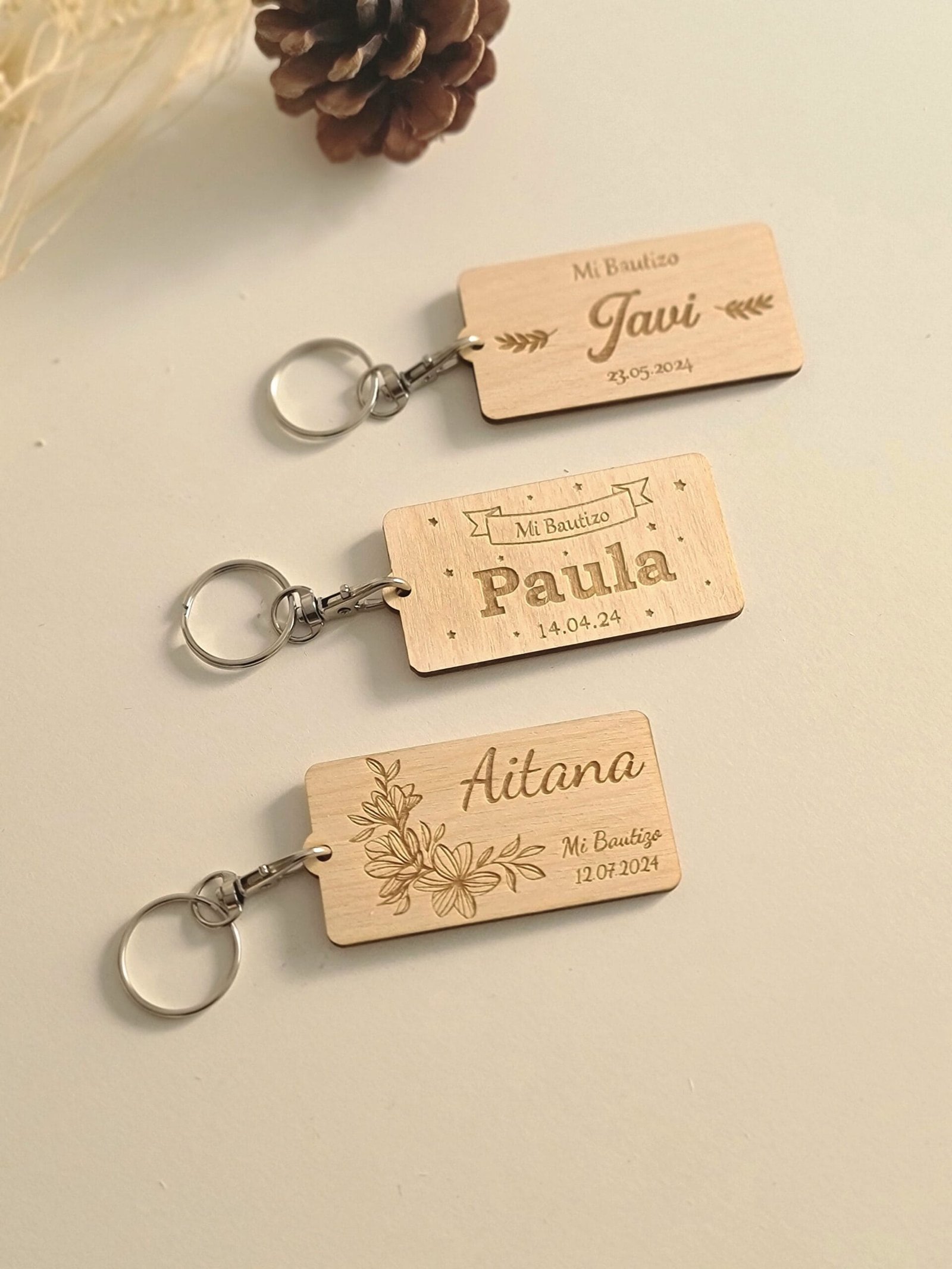 Llavero de Madera Personalizado para Bautizo
