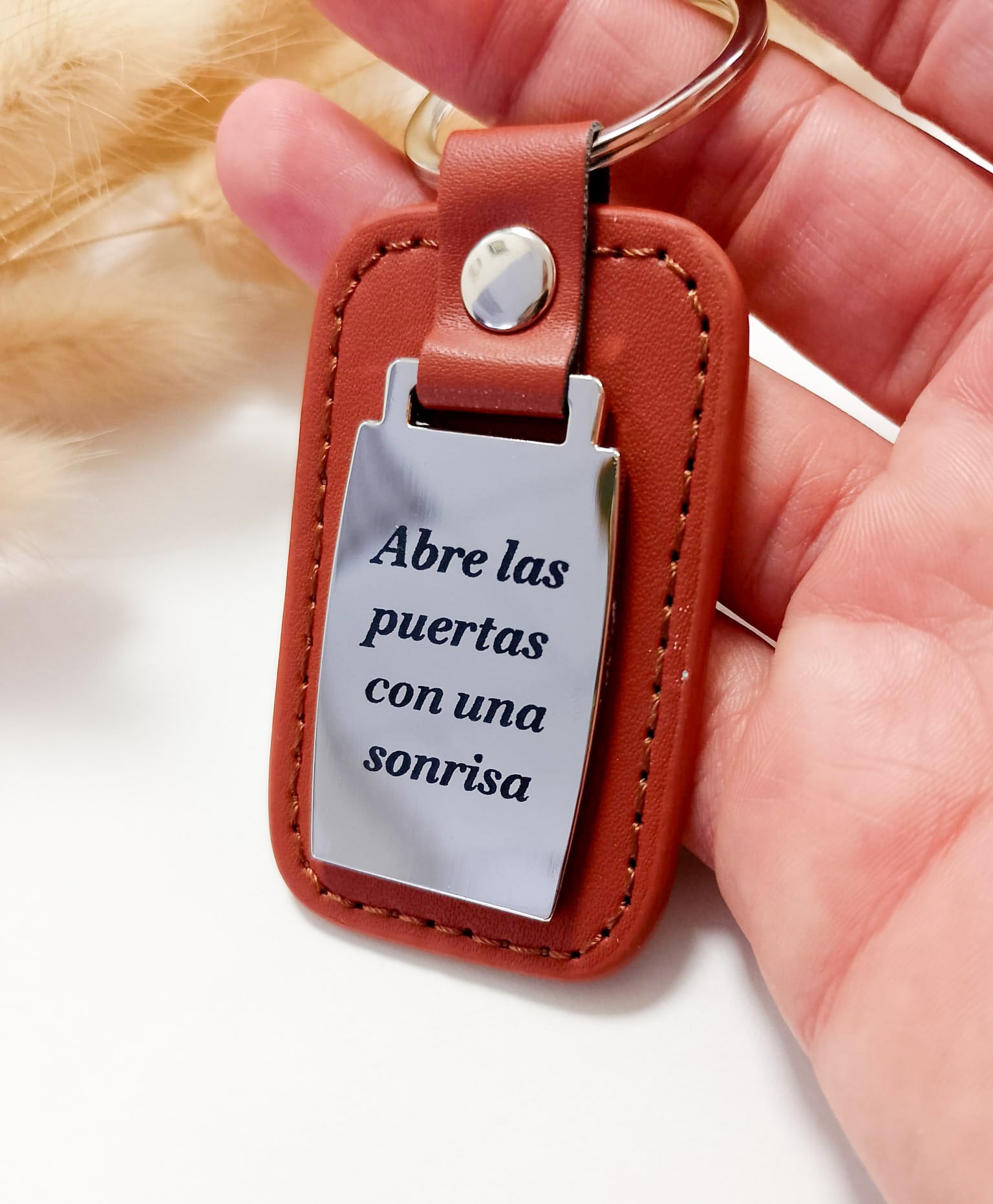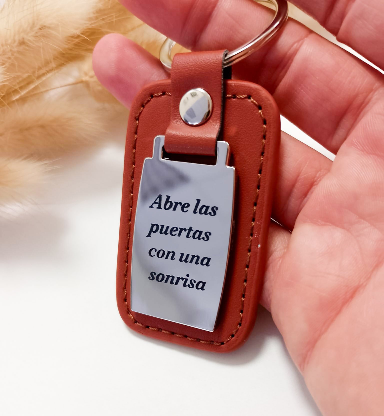 Llavero personalizado de acero inoxidable y ecopiel