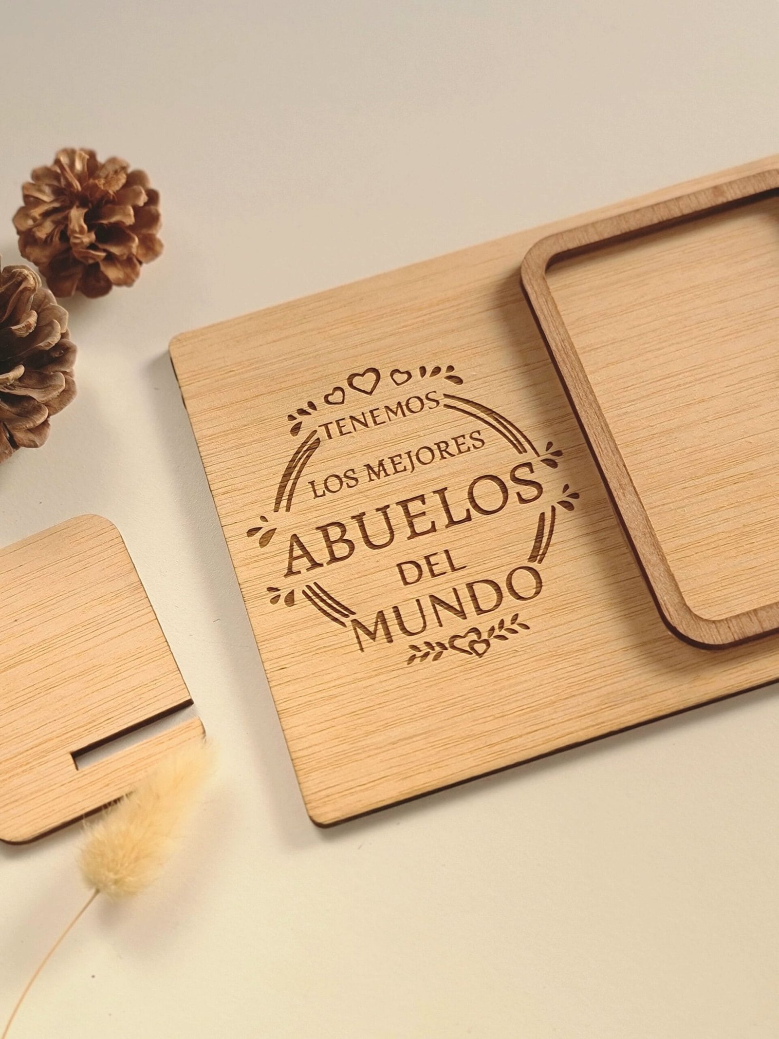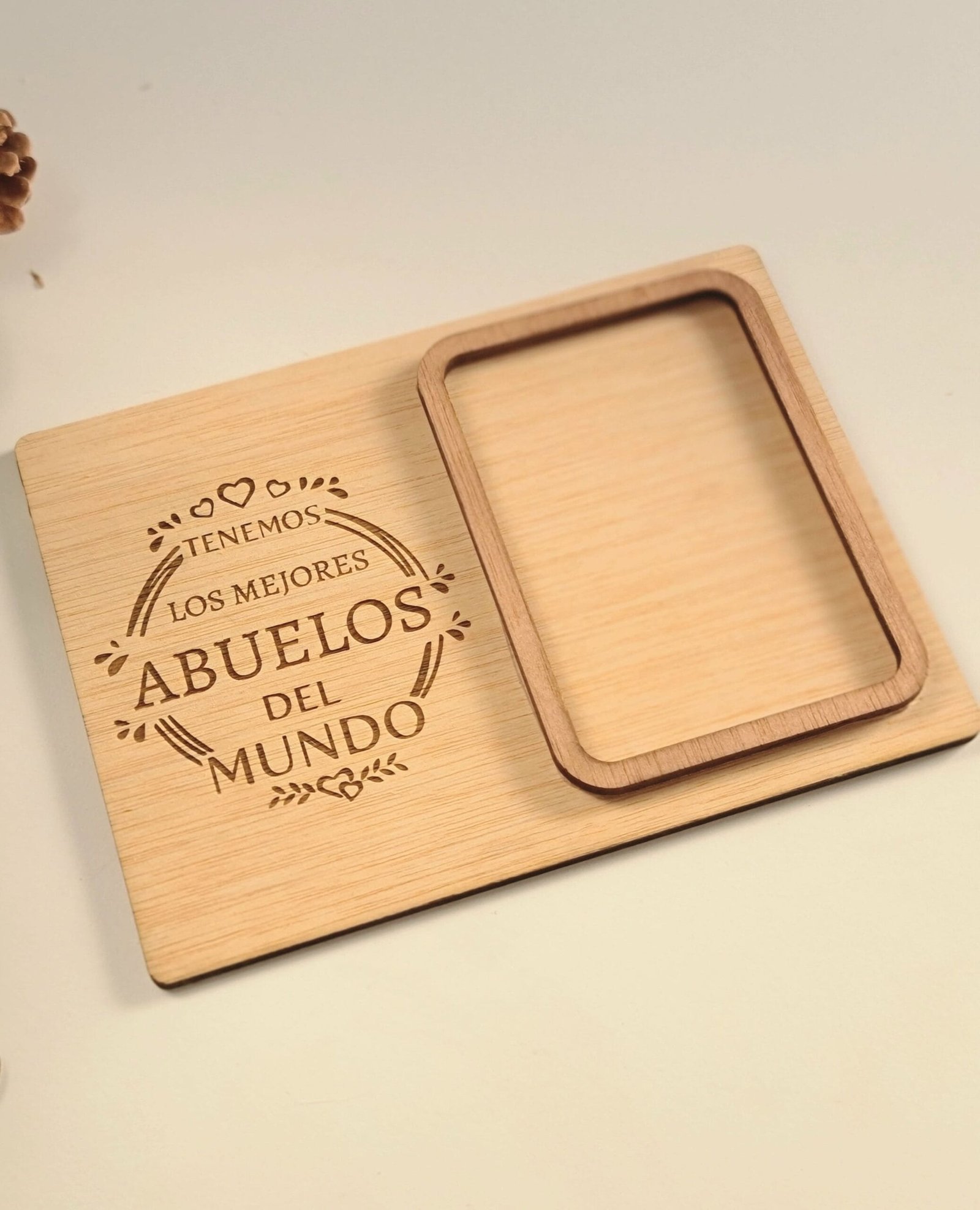 Este precioso marco de madera está diseñado especialmente para honrar a esa persona tan especial en tu vida. La palabra "Abuelo" se convierte en un marco único de recuerdos, creando un regalo lleno de amor y significado.