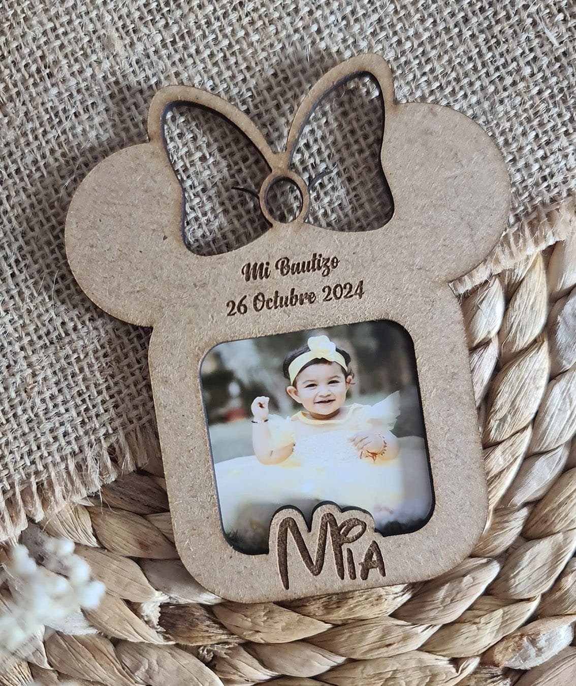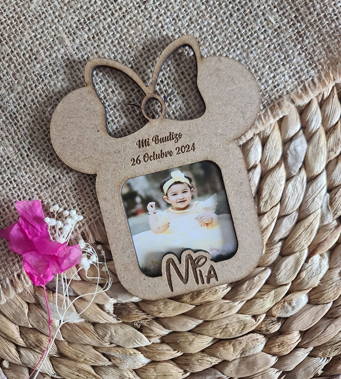 ¡No dejes escapar la oportunidad de llevar un pedacito de la magia de Disney a tu vida cotidiana con el Marquito Imán Bautizo Disney Minnie Mouse!🌟