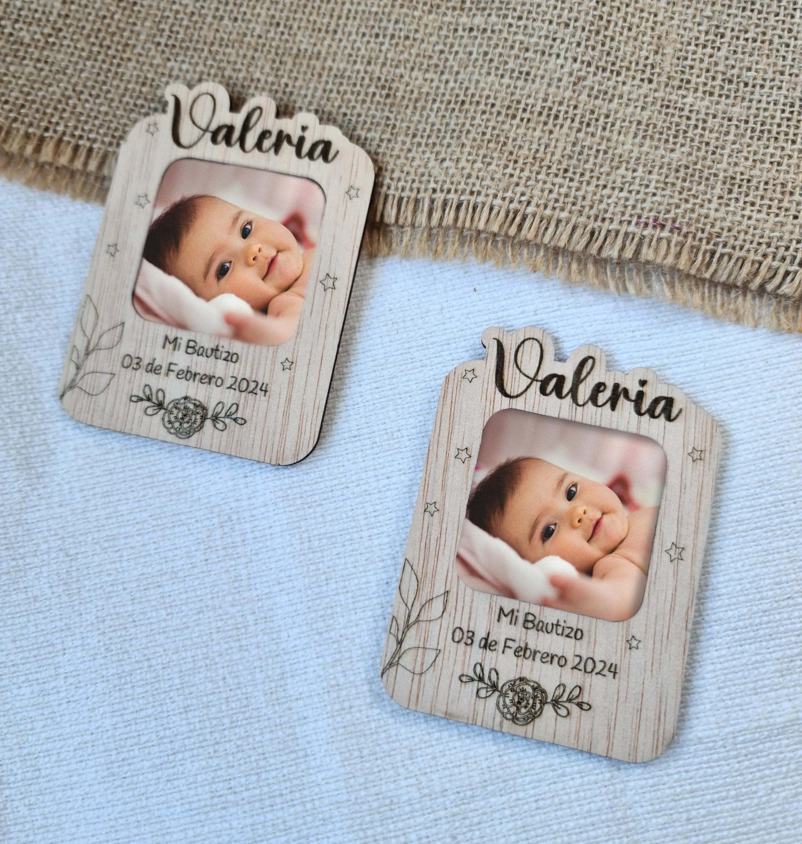 ¡Haz que el bautizo de tu bebé sea aún más memorable con estos marquitos imán personalizados! Con la foto de tu peque, estos marquitos se pueden colocar en cualquier superficie metálica, como el frigorífico, para que tus invitados siempre tengan a mano un recuerdo de ese día tan especial.