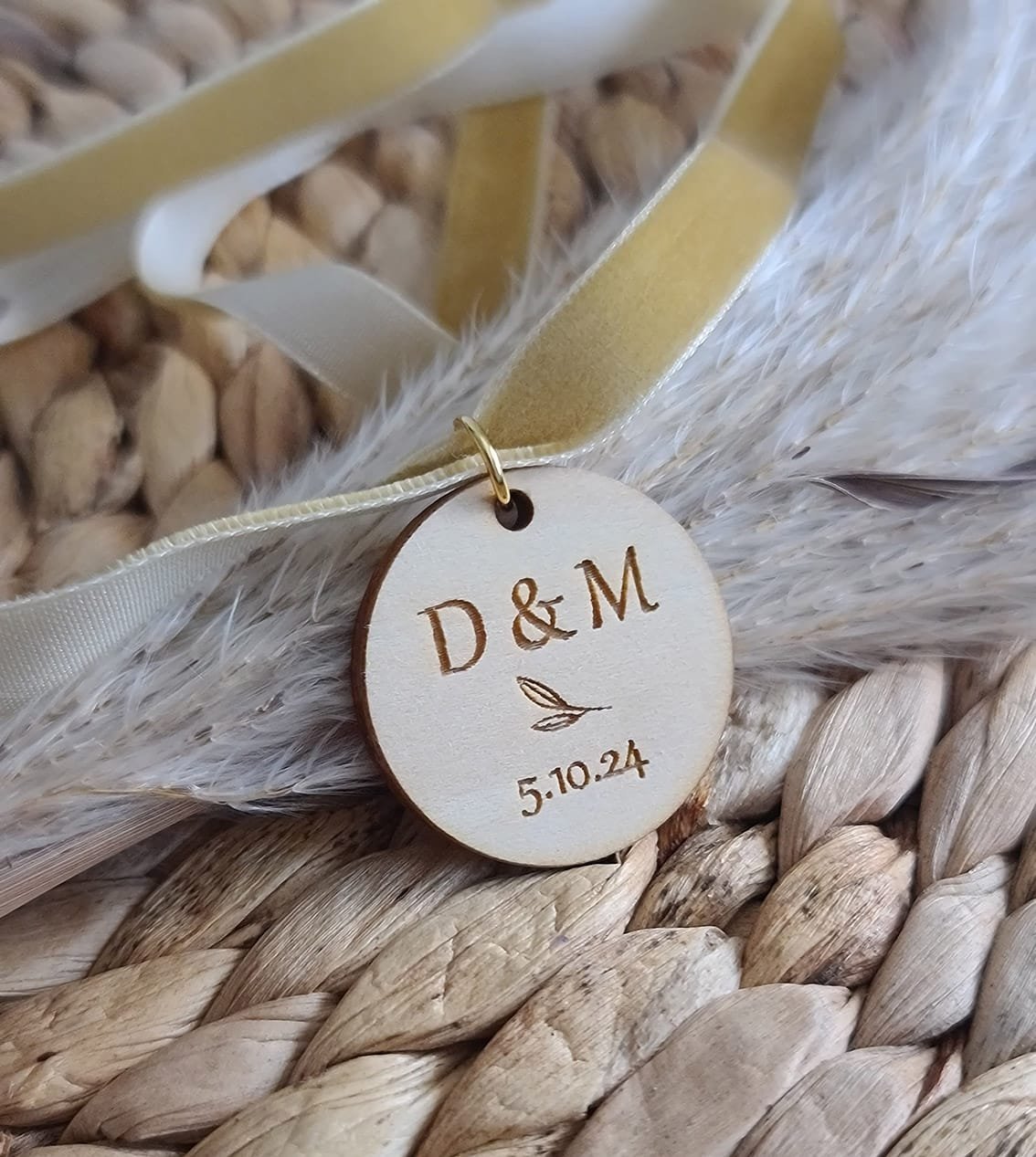Añade un toque único y significativo a tu ramo con esta preciosa medalla en madera. Hecha a mano con delicados detalles, esta pieza puede personalizarse con tus iniciales, fecha especial o un mensaje significativo, haciendo que tu ramo cuente una historia propia. Perfecta para llevar a alguien especial contigo en ese día tan importante o como un recuerdo que guardarás por siempre. Su diseño natural y elegante combina perfectamente con cualquier estilo de boda, aportando un toque rústico y elegante.