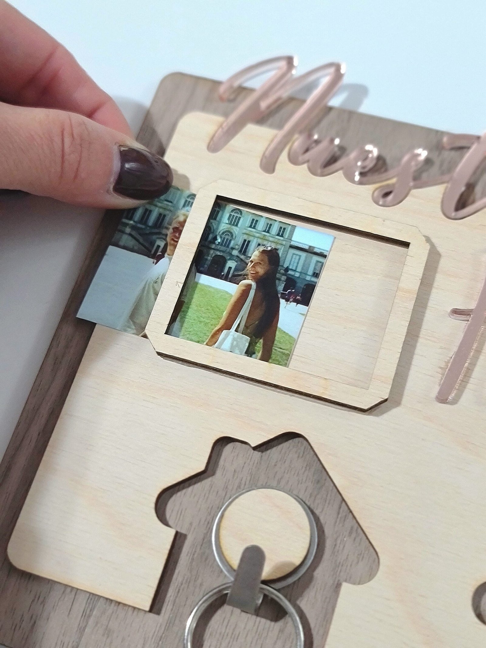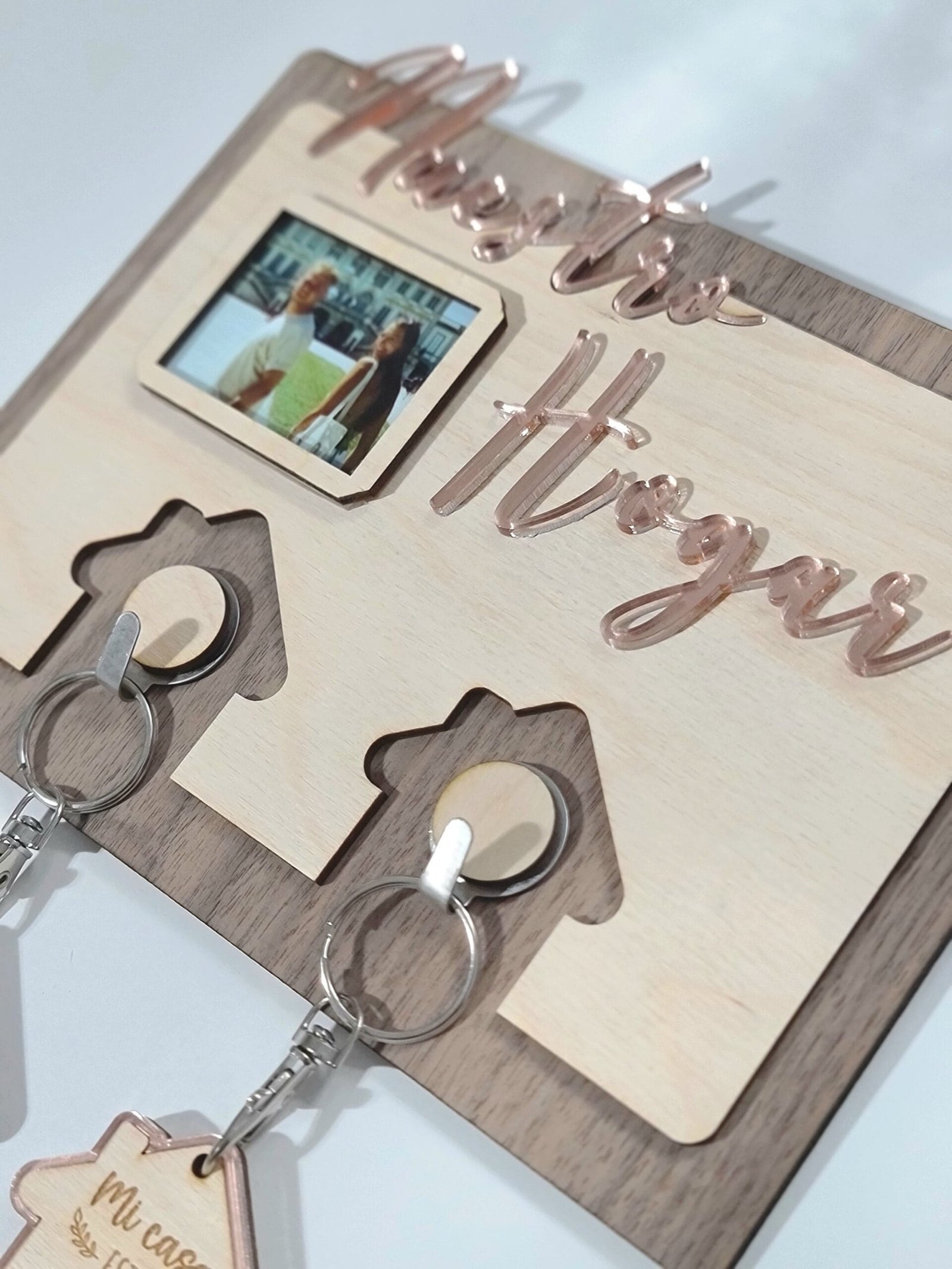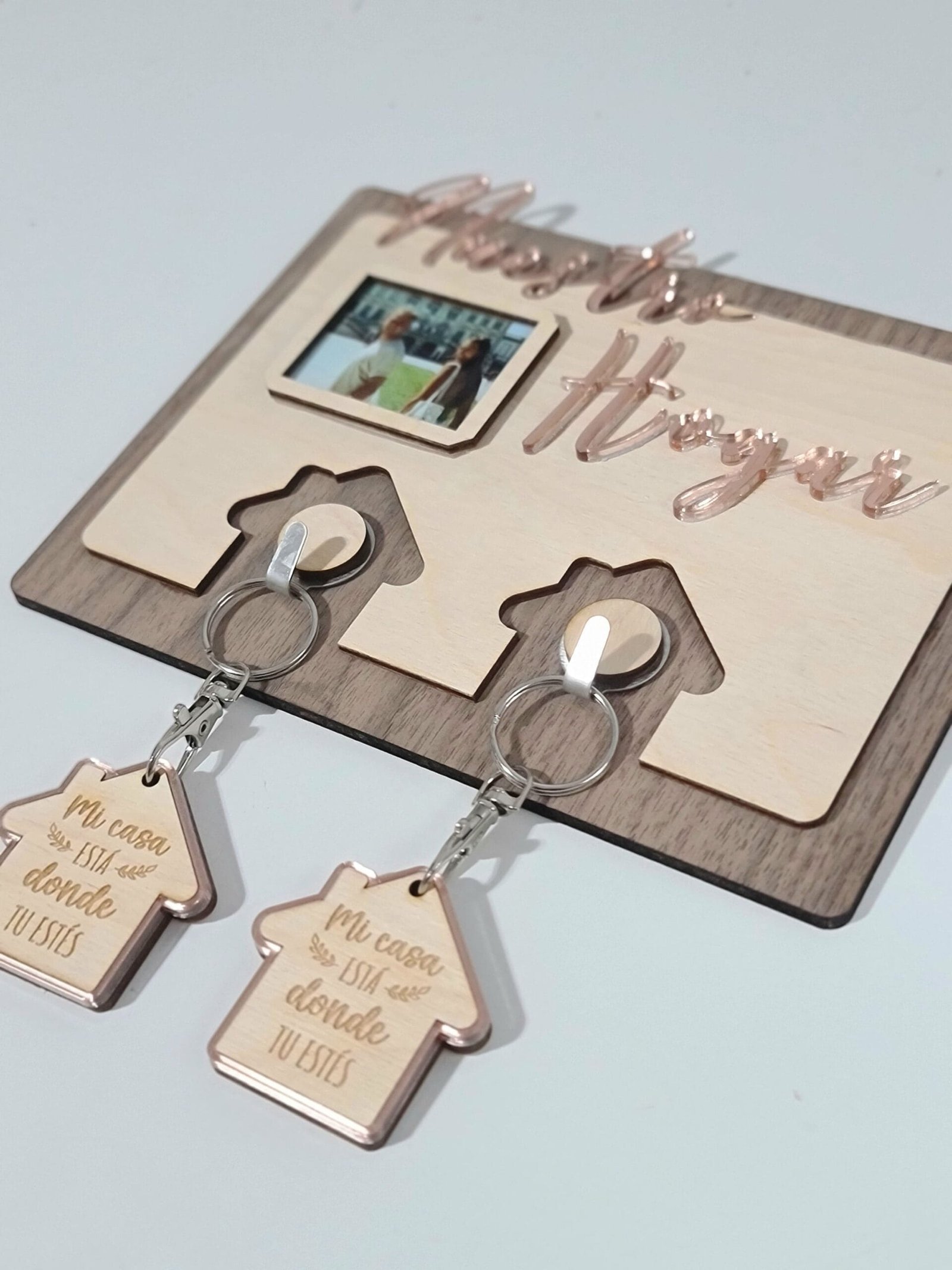 Cada cuelgallaves está personalizado con la frase "Nuestro Hogar", lo que lo convierte en un objeto significativo. Es una forma hermosa de mostrar el cariño por tu hogar y mantener tus llaves organizadas.Opción de Añadir una Foto