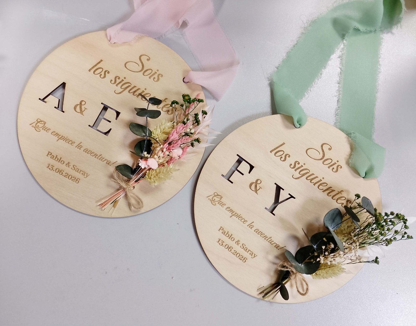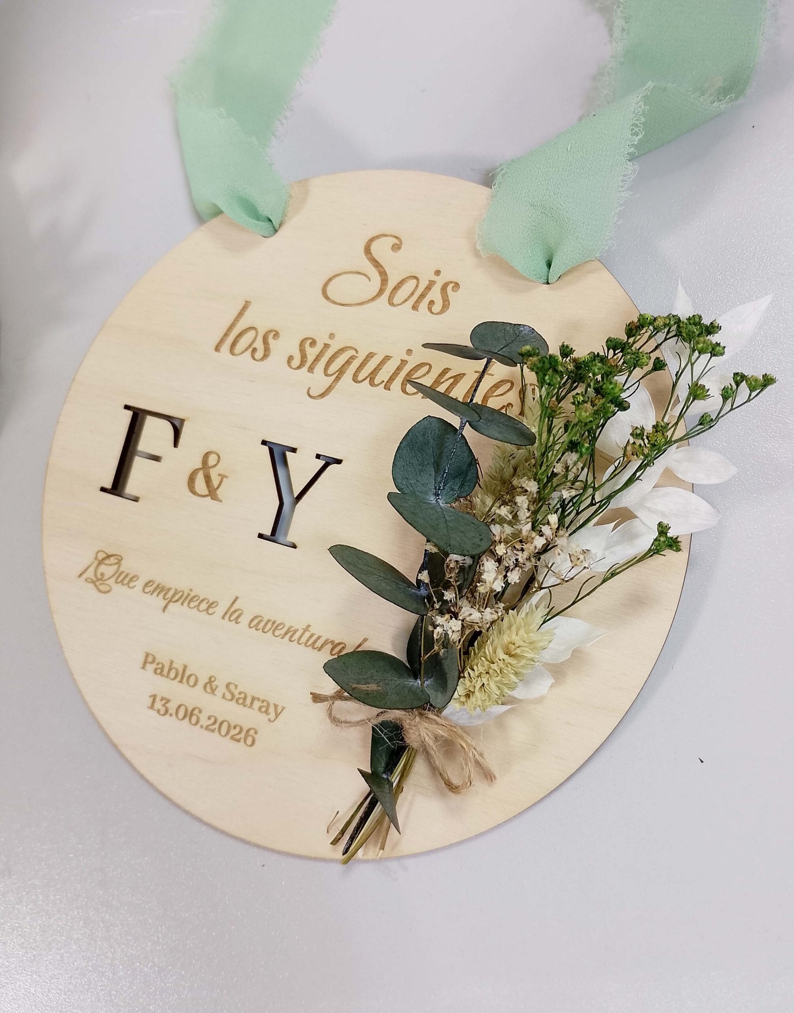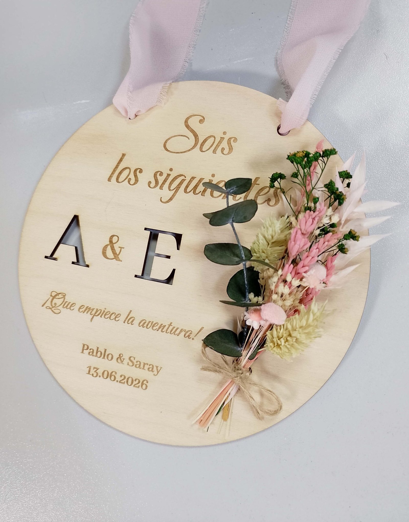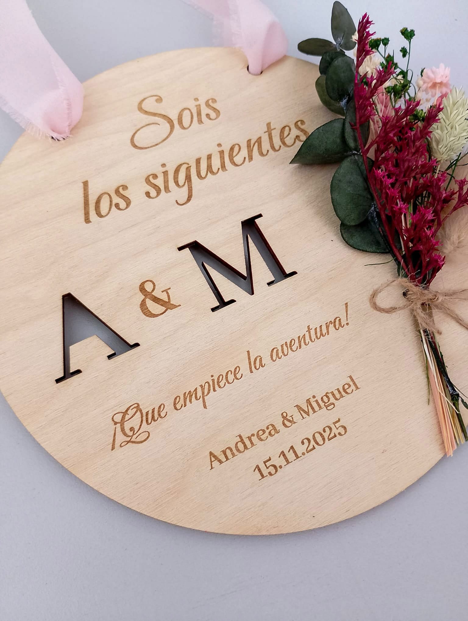 Celebra el amor y los nuevos comienzos con nuestra placa de madera natural “Sois los Siguientes” con flores preservadas. Un detalle artesanal, elegante y lleno de significado para regalar o decorar en bodas y compromisos.