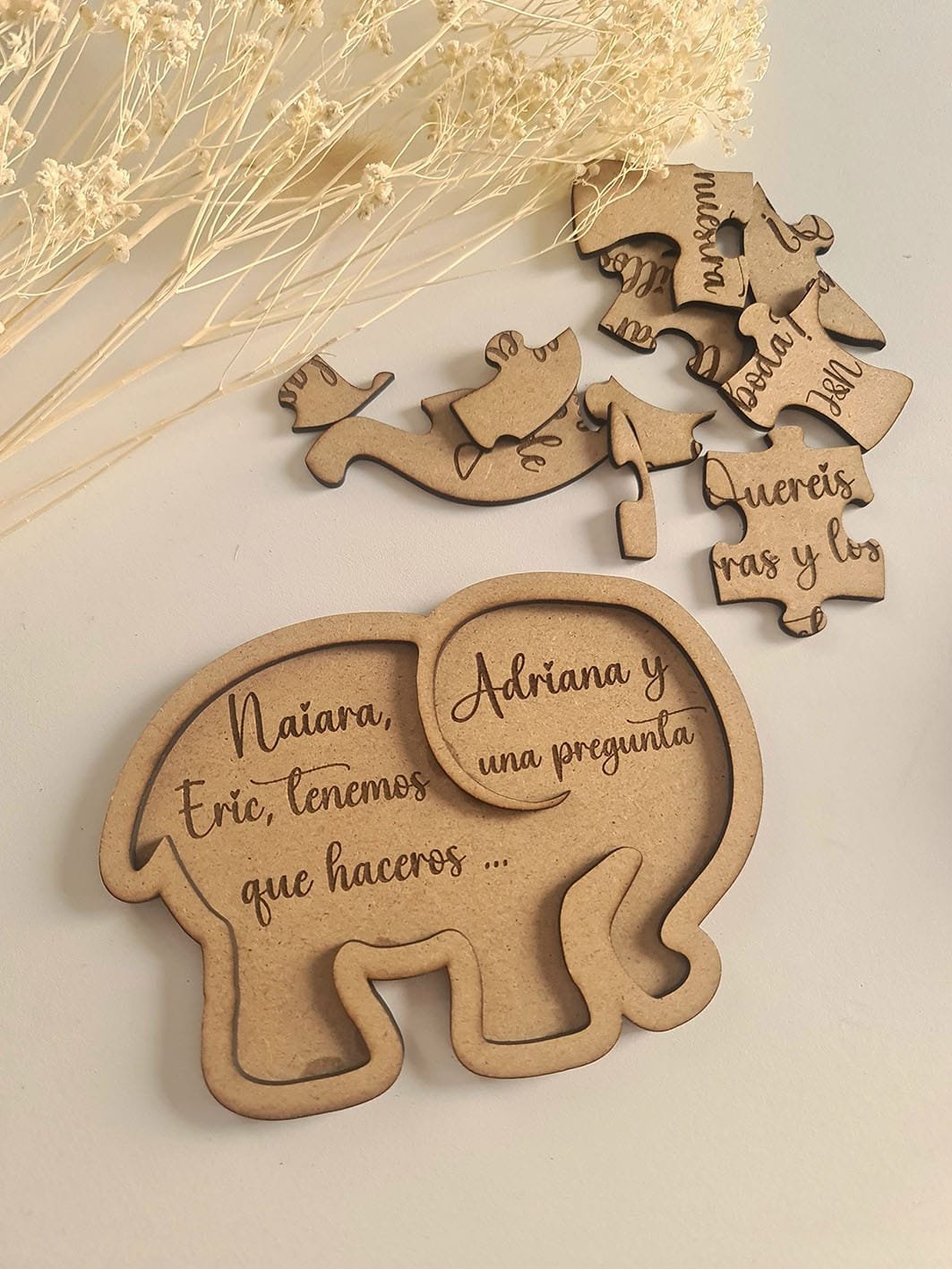Nuestro puzzle de madera personalizado es la forma perfecta de hacerlo. Al montar las piezas, descubrirá el mensaje sorpresa y vivirá un momento lleno de emoción.